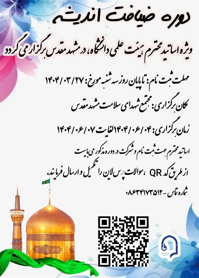 دوره ضیافت اندیشه ویژه اساتید محترم هیئت علمی دانشگاه ، در مشهد مقدس برگزار می گردد.